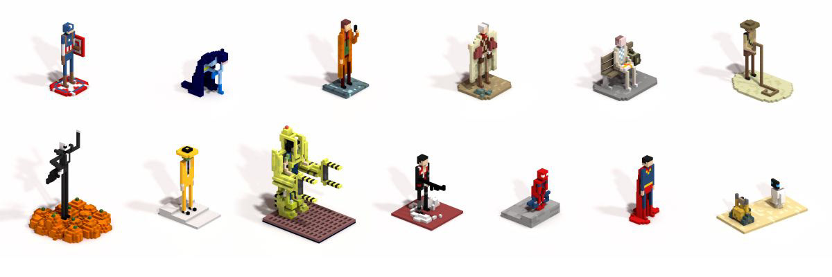 A voxel hommage to iconic movie heroes.
